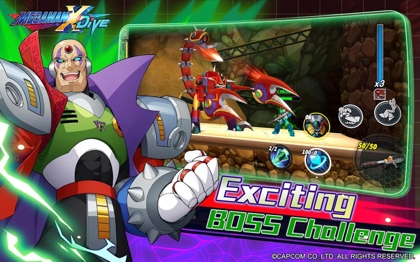 MEGA MAN X DiVE - MOBİL - Süper güçlere sahip en cesur karakterlerle oynayarak iyilik dünyasına dalın ve kötülüğü sonsuza dek unutun. Savaşlarda kullanma fırsatına kesinlikle sahip olacağınız çeşitli silahların heyecanını yaşayın. Her yeni darbe ile patronları hemen yenmeye çalışın ve arkadaşlarınızla geçireceğiniz zorlu seviyelerin tadını çıkarın. Kendi fantastik yeteneklerinizi sergileyin ve tüm cephaneliğinizi gösterin. Yüksek zıplayın, hızlı koşun, profesyonelce savaşın ve gerçekten cesur hissedin.