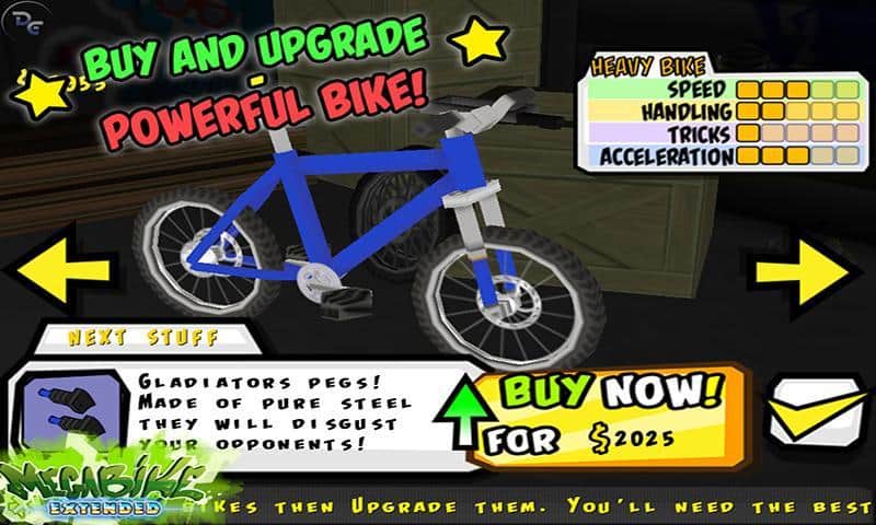 Megabike Extended - Harika bir 3D android oyunu! En büyük bisiklet yarışı şampiyonasına katılın, rekorları kırarak zafer kazanın! Farklı yeteneklere sahip 4 karakterle oynayın, bisikletinizi kontrol edin ve numaralar yapın. Çeşitli ekstrem yarış pistlerinde yarışın, engellerden kaçının ve bisikletinizi güncelleyin.