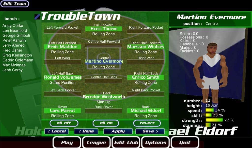 MegaFooty Hızlı Şut - Android için bir ragbi spor oyunudur, burada diğer takımlarla şampiyonluk kupası için savaşacaksınız. Avustralya'da AFL, VFL, SANFL ve Wafl liglerinde oynayacaksınız, burada 18 oyuncudan oluşan bir takımı yöneteceksiniz. Bu oyun, hızlı bir tepki gerektirecek ve oyunun hızını sürdürebilmek için topu ustalıkla kullanmanızı isteyecektir. Oyun, kolay kontrolleri ve iyi 3D grafikleri ile sizi memnun edecektir.
