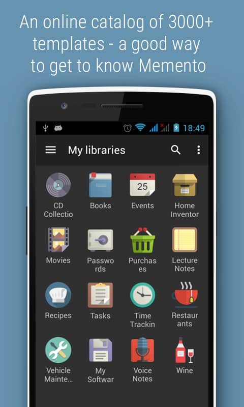 Memento Database - Artık not defterlerine ve hatırlatıcılara ihtiyacınız yok! Kendi veritabanınıza sahip olabilirsiniz! Bu, kayıtlarınızı düzenli bir şekilde saklayacak süper harika bir uygulama. Artık sadece günlere veya saatlere değil, ayrı kategorilere ve alt kategorilere göre düzenleyebilirsiniz. Koleksiyonlar, alışverişler, envanter, tarifler, görevler - bunların hepsi artık her zaman erişilebilir tek bir yerde saklanacak. Hayatınızı kolaylaştırın ve hatta yaşam hedeflerinizi belirleyin, bu uygulama her zaman onların ilerlemesi hakkında sizi bilgilendirecek.