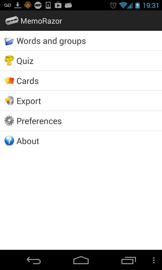 MemoRazor – yabancı dilleri (Rusça, İngilizce, İspanyolca, Almanca, Fransızca, İtalyanca, Lehçe, Hollandaca) öğrenmek isteyenler için açık kaynaklı mükemmel bir Android uygulamasıdır. Öğrenme, kelime grupları aracılığıyla, kartlar ve quizler yardımıyla gerçekleşir! MemoRazor ile birlikte gelişin.