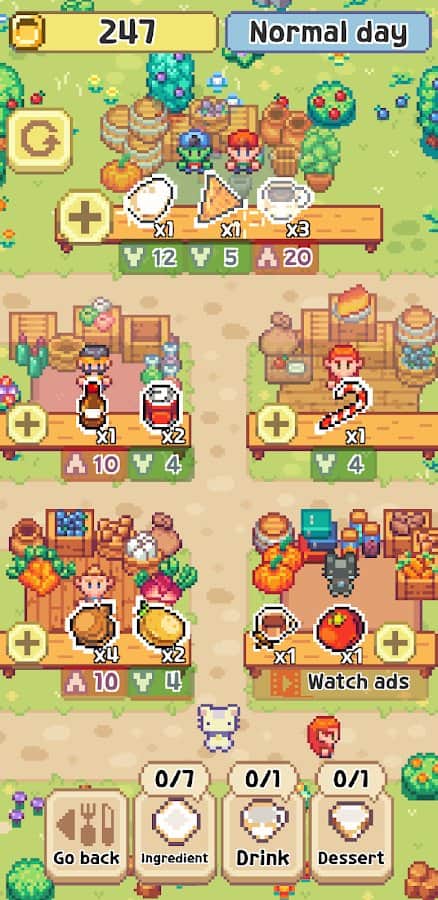 - Bistronuzu geliştirin, kazandığınız parayı iyileştirmeler için ve ayrıca pazar ile çalışan kedilerin iyileştirilmesi için yatırın. Bistronuzun herkesin geri dönmek isteyeceği bir yer olmasını sağlayın.