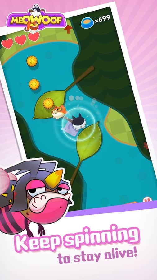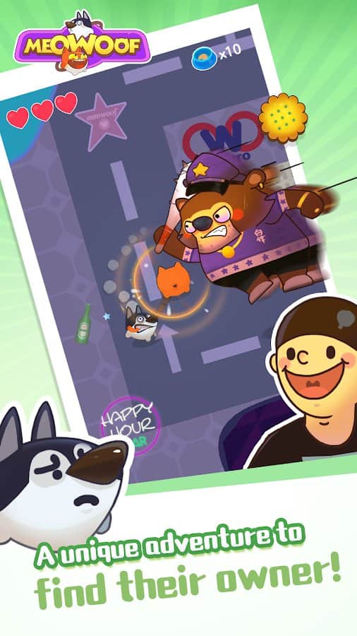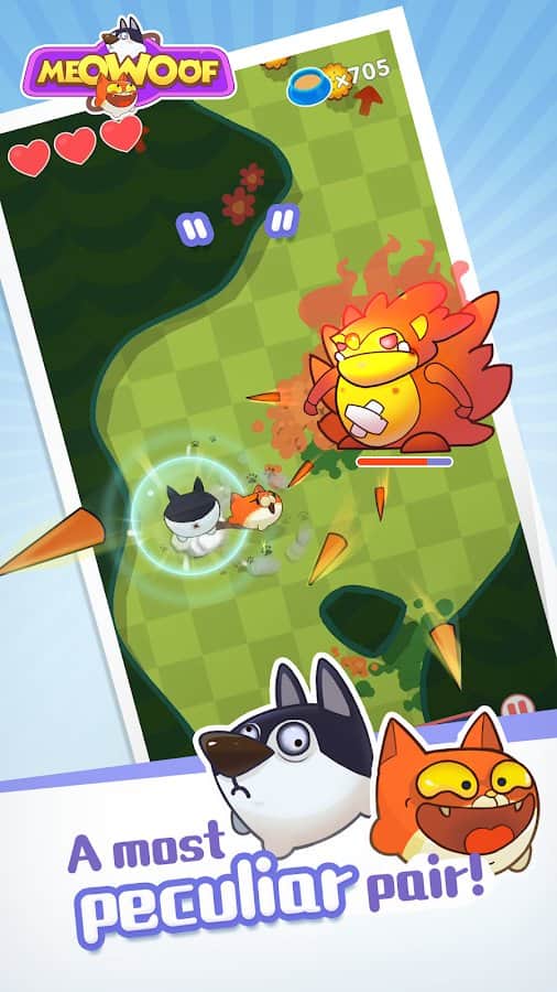 Meowoof - sıradışı iki boyutlu bir arcade oyunu, aksiyon unsurlarıyla birlikte. Bu oyunda, kedinin ve köpeğin birleştiği oldukça sıradışı bir karakteri kontrol etmeniz gerekiyor. Karakter, bir eksen etrafında dönerken hareket eder ve kontrol, tek bir tuş aracılığıyla sağlanır. Oyunun ana amacı, kahramanlarımıza sahiplerini bulmalarında yardımcı olmaktır ve bunun için birkaç düzine seviyeyi geçmek gerekecek.