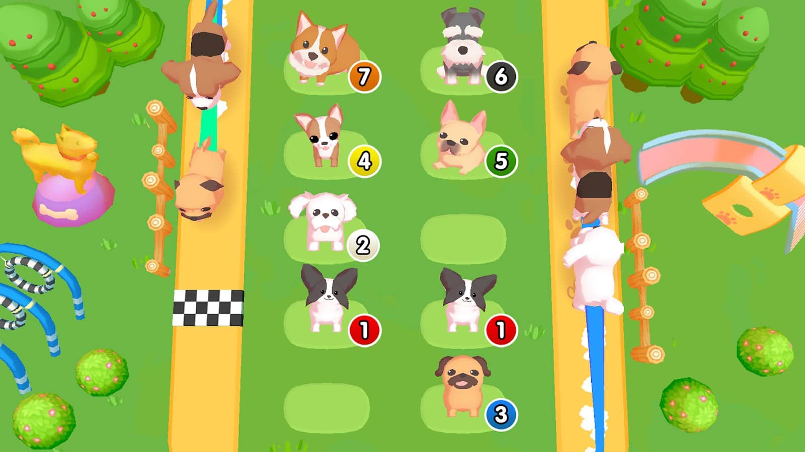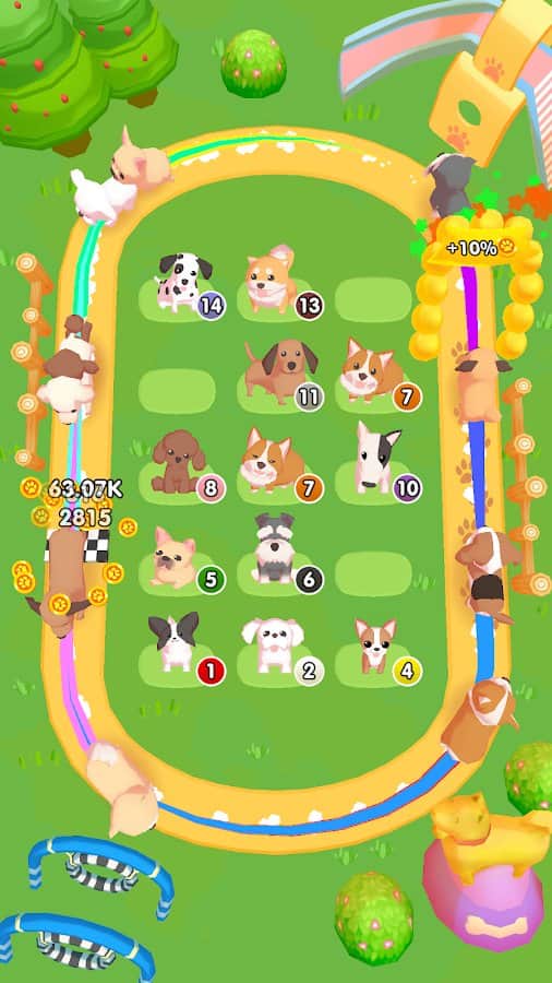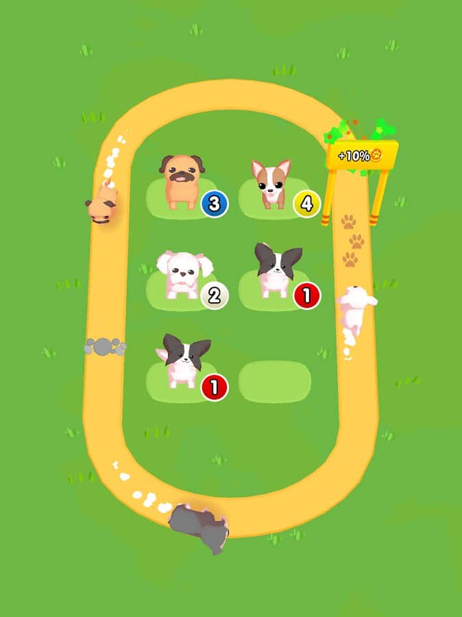 Birçok köpeği koşu bandında daire şeklinde eğitmeye başlayın ve sadece onların değil, sahiplerinin de ne kadar mutlu olduğunu göreceksiniz. Alman çoban köpekleri, labradorlar, chihuahua, pudlalar, beagle'lar, bulldoglar, dalmaçyalılar, mopslara, dachshundlar, rottweilerlar, yorkshire teriyerleri ve daha birçok farklı köpek ırkıyla karşılaşabilirsiniz! Hepsinin koleksiyonunu oluşturmak için, mevcut seviyeleri birleştirmeli, ardından onları koşmaya göndermeli ve paralar kazanmalısınız. Paralarla alanda süs eşyaları satın alarak etraf boş kalmayacak ve oynamak daha ilginç hale gelecektir.