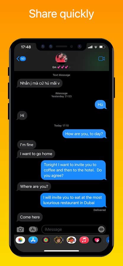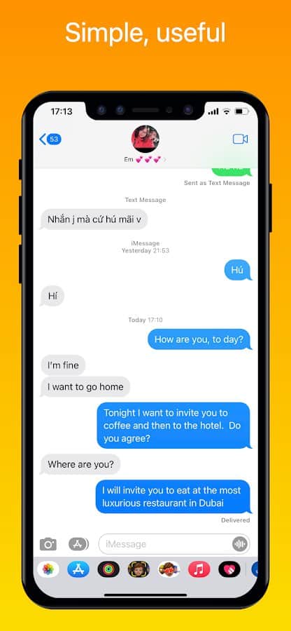 Mesajlar iOS 15 - Android'de iPhone'un işlevselliğini deneyimleyin! Bu uygulamayı yükleyerek, ilginç mesajlaşma, açık ve koyu tema arasında geçiş yapma, mesajları yukarı veya aşağı hızlı bir şekilde kaydırma, belirli bir mesajı kolayca arama, akıllı sıralama, önemli bildirimleri sabitleme ve dünyanın çeşitli dillerini destekleme gibi yeni olanaklar sunulacak. Kolaylıkla mesaj yazın, gönderin, silin, düzenleyin ve elde ettiğiniz sonuçların tadını çıkarın!
