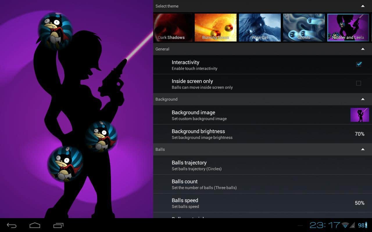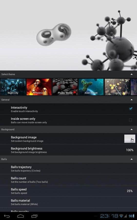 - Kendi teman: galeriden herhangi bir görüntüyü seç, top sayısını, hızını, rengini, yörüngesini ayarla, 3D efektleri ayarla ve sonucun tadını çıkar! Toplar çok şey yapabilir!