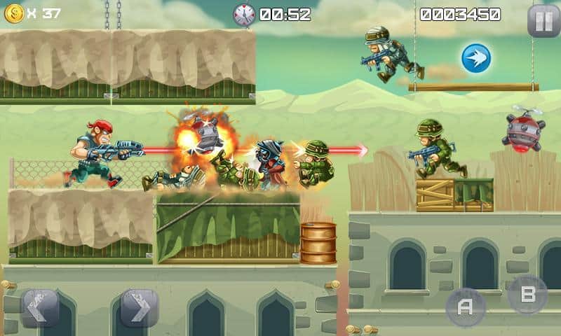 Ve böylece, sizi klasik bir oyun deneyimi bekliyor; iki boyutlu bölgelerde hareket ederken çeşitli silahlarla yüzlerce düşmanı vurmanız gereken bir görev var. Metal Soldiers geliştiricileri, Android için klasik silah stilini, karakter seçme imkânını ve alışılmış kontrolleri korumuş, buna ek olarak oyuna modern grafik sunumu eklemiştir.