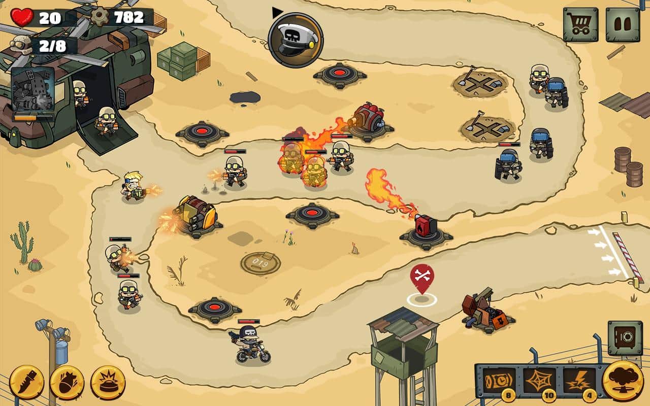 Metal Soldiers TD: Kule Savunma - çizgi film tarzında sunulan bir kule savunma serisinden taktiksel bir stratejidir. Savunmamız gereken şey, düşmanların saldırısından plaj hattını korumaktır ve bu kadar. Ancak bu projedeki hikaye kesinlikle en önemli şey değil, ana vurgu oyun sürecine yapılmıştır ama burada da sürprizler olmadan geçmedi. Metal Soldiers TD: Kule Savunma'daki oyun süreci klasik bir prensibe dayanıyor; plaj hattında kaleler ve savunma kuleleri inşa edin ve saldıranları yok etmeye çalışın. Grafik öğeleri ise gerçekten hoş bir çizgi film tarzında gerçekleştirilmiştir.