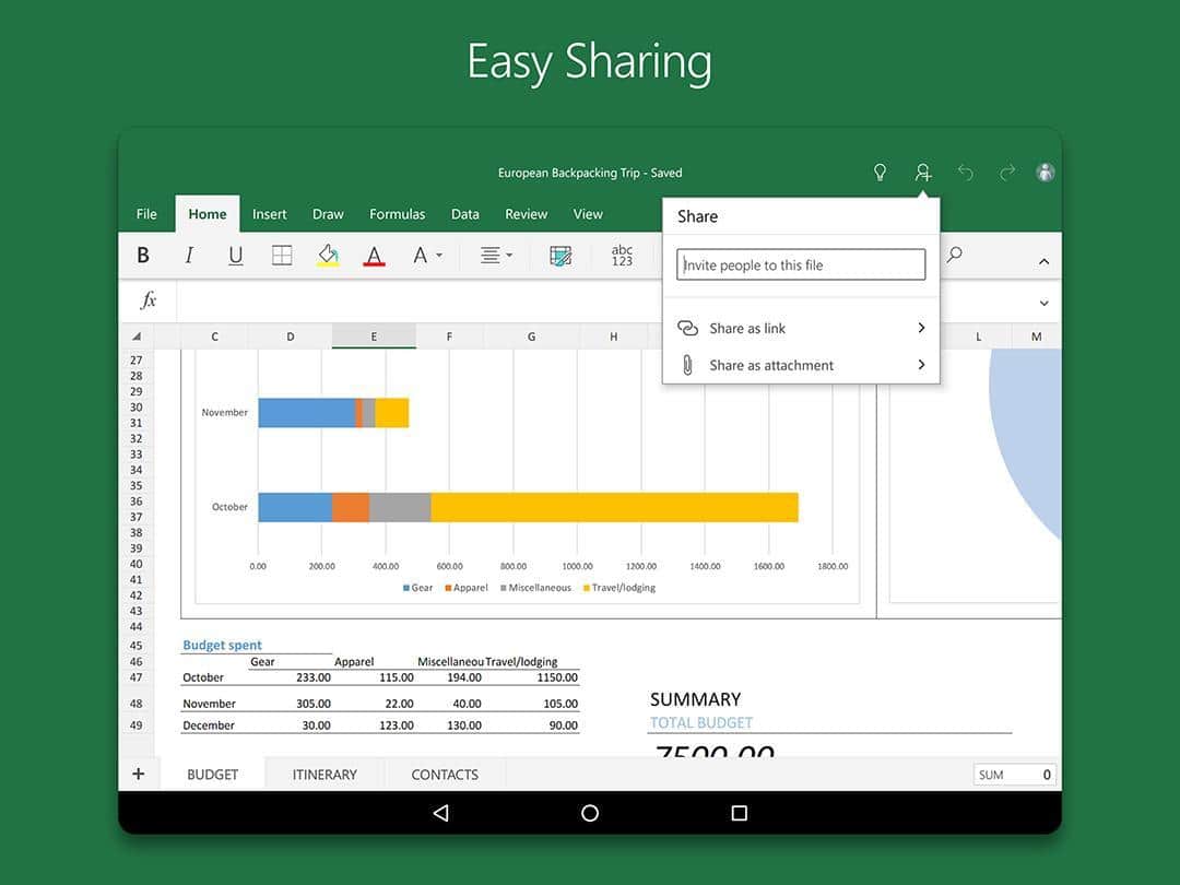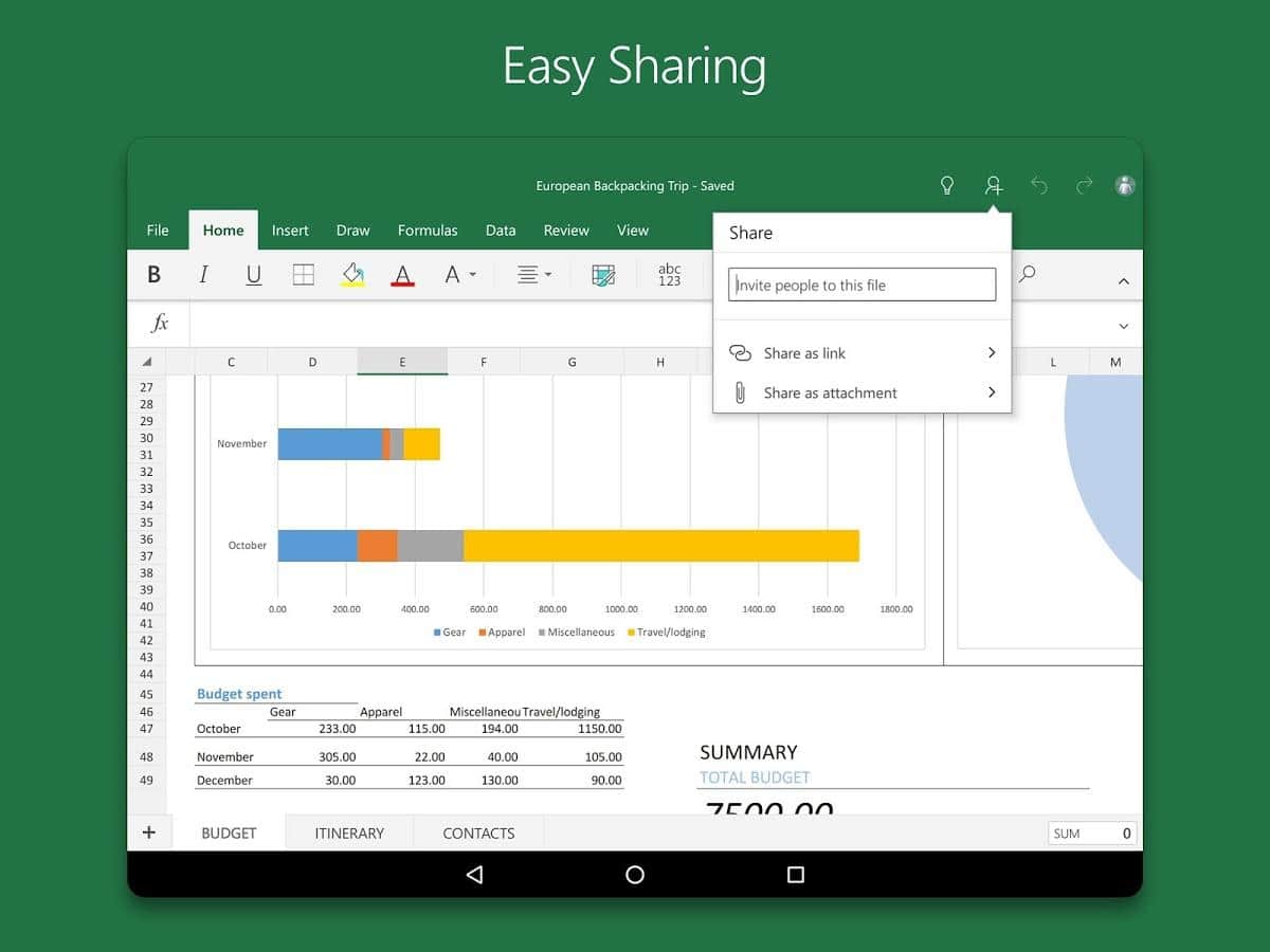 Microsoft Excel - PC kullanıcıları arasında oldukça tanınan, elektronik tabloları görüntülemek, oluşturmak ve düzenlemek için oluşturulmuş bir programdır ve şimdi Android'de! Uygulamada, ekran boyutu 10,1 inç ve daha küçük olan tabletlerde belgeleri görüntüleme, oluşturma ve düzenleme için temel işlevler gerçekleştirilmiştir. Tablo, grafik ve raporlar oluşturma, en karmaşık hesaplamaları yapabilme özelliği, bu programı muhasebeciler ve ekonomistler arasında popüler hale getiriyor. Ayrıca program, anlaşılır bir arayüz ve kullanım kolaylığı ile dikkat çekiyor.