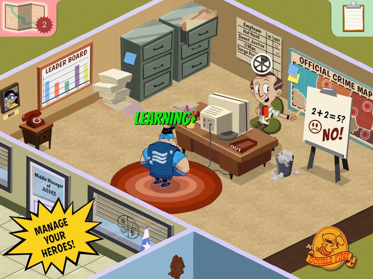 Adaletin Orta Düzey Yöneticisi - android için bir oyundur, burada süper kahramanlar şirketinin yöneticisi olacaksınız. Onları eğitin, yaşamlarını yönetin, yani gerçek Süper Kahramanlar yetiştirin. Gerekli becerilere ulaştıklarında, onları kötülük ve suçla mücadele için çeşitli görevlere gönderin. Görevleri daha başarılı bir şekilde tamamlamaları için silahlarını ve teçhizatlarını geliştirin.