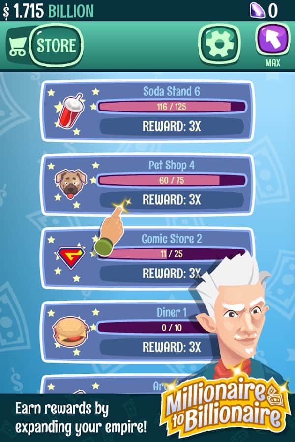 Milyoner Milyarder Tycoon - Tıklama Oyunu – Android için harika bir simülatör, burada milyarder olacaksınız. Bu oyunda göreviniz, telefonunuzun veya tabletinizin ekranına mümkün olduğunca sık dokunmak ve para kazanmaktır. Sıfırdan başlayın ve size masalsı bir gelir getirecek kendi iş imparatorluğunuzu oluşturun. Dünyanın en büyük şirketlerini kurun ve binaları güncelleyerek daha fazla para kazanın. Pazarı keşfedin ve öğrenin, böylece daha fazla para kazanma yeteneği kazanabilirsiniz. Hemen oynamaya başlayın ve ilk milyonunuzu kazanın.