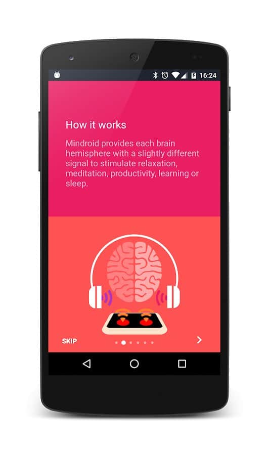 Mindroid - Geliştiricinin iddialarına göre sizi rahatlama durumuna sokması gereken oldukça ilginç ve alışılmadık bir uygulama. Bu cihaza beyin makinesi de denir ve ismini boşuna almadı. İşin özü, kulaklık takmanız ve uygulamayı başlatmanız gerektiğidir. Uygulama, sesler ve ekranda yanıp sönen daireler üretecek, bu da beyninize sinyaller göndererek onu rahatlatır. Ayrıca, herkesin kendi parametrelerine göre ihtiyaç duyduğu şeyleri değiştirebileceği ayarlar da bulunmaktadır. Bu uygulama, epilepsi hastalarına ve kalp hastalığı olan kişilere kesinlikle önerilmez.