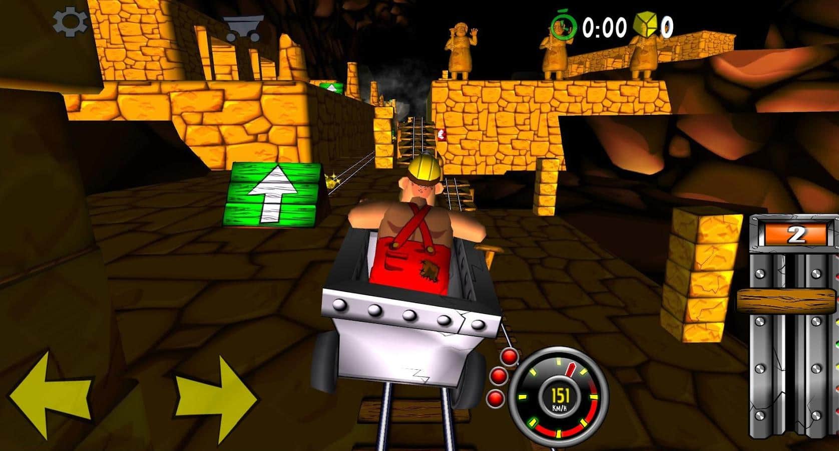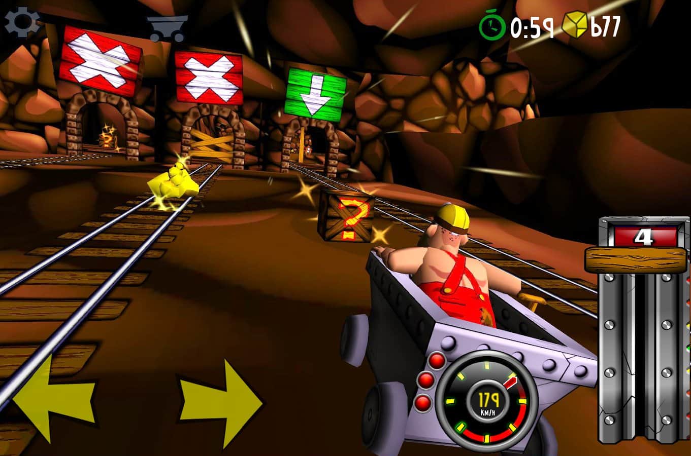 MineCart Maceraları - Android için harika bir renkli arcade oyunu. Bir madenci olarak oynayacaksınız, altın nuggets'larının bulunduğu madenin ortasına ulaşmak istiyor. Oraya ulaşmak için bir vagona binip, inşa edilmiş olan demiryolu boyunca tehlikelerden kaçınarak ilerlemeniz gerekecek. Ayrıca oyunda, zor zamanlarınızda sizi kurtaracak çeşitli eşyalar satın alabileceğiniz bir dükkan da var.