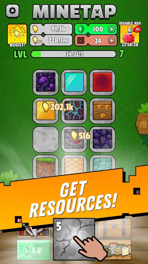 MineTap - Çeşitli kaynakları çıkarma, canavarlara karşı yoğun savaşlar, kendi köyünüzü inşa etme, mevcut malzemelerden özel ekipman ve diğer nesneler oluşturma. İlginç görevleri yerine getirin ve kübik evrende ana karakterin yaşamını iyileştirin, en iyi oyuncu olun ve sanal dünyayı tamamen yönetin. Günlük kullanım eşyaları oluşturmak için gerekli malzemeleri çıkarın, oyundaki meşguliyeti artırmak için eğlenceli aktiviteler bulun, güçlü canavarlara karşı savaşın ve büyük patronlarla karşılaşmaya hazırlıklı olun!
