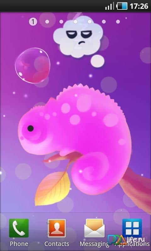 Mini Bukalemun - Android'inizde dalda sallanan küçük bir bukalemun ile çok sevimli canlı duvar kağıtları! Bu duvar kağıtlarını indirin ve kurun, bu sevimli kertenkele sizi renk değişimi ile mutlu edecek, sessizce uyuyacak ve rüyalarını gösterecek. Eğer onu parmağınızla dürterek uyandırmaya karar verirseniz, onun memnuniyetsiz düşüncelerine şaşırmayın, ama eğer sırtını nazikçe okşarsanız - sevgisini gösterecek ve tatlı bir şekilde mırıldanacak!
