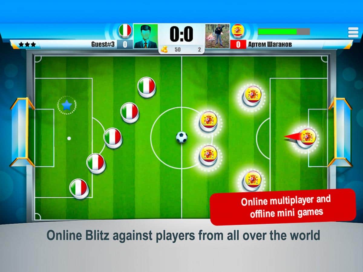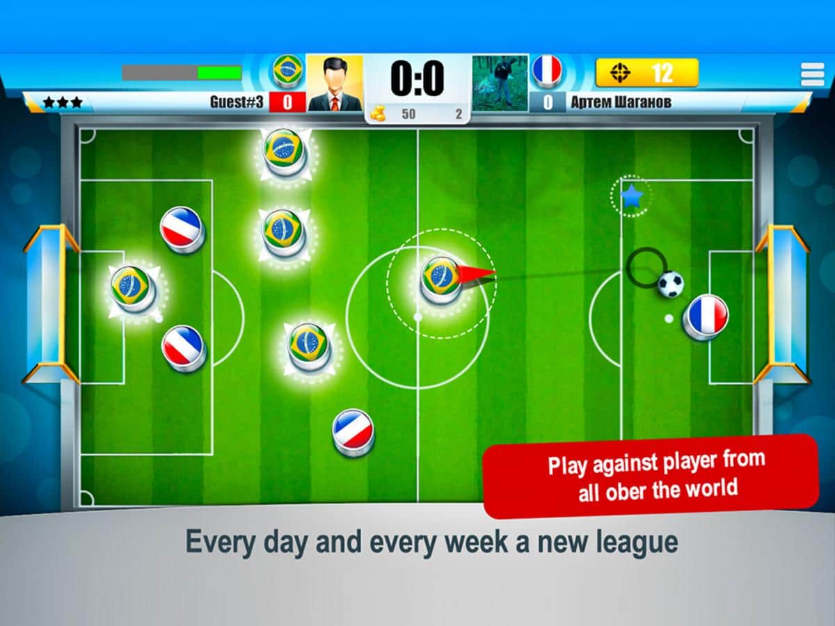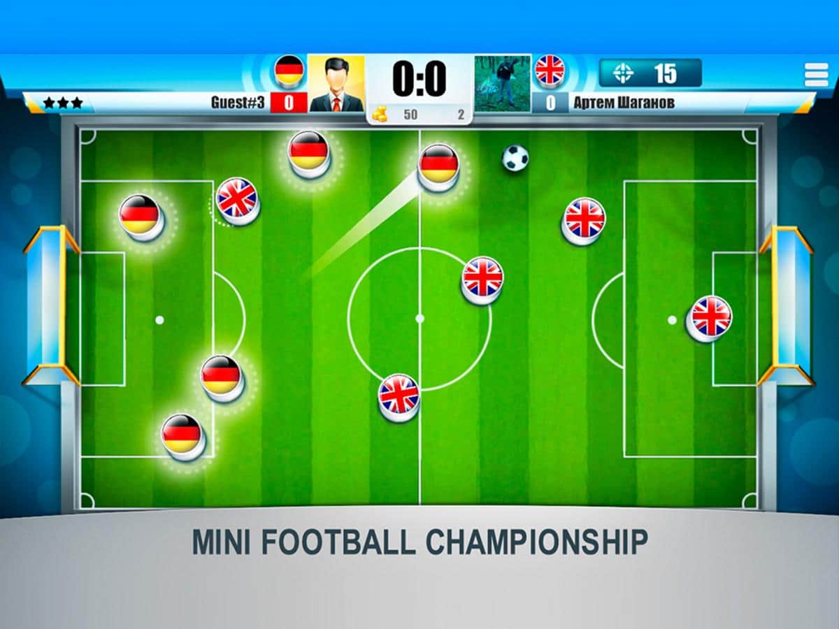 Mini Futbol Şampiyonası - arkadaşlarınızla veya dünyanın herhangi bir yerinde bulunan diğer rastgele oyuncularla oynayabileceğiniz eğlenceli bir mini futbol oyunudur. İnternet yoksa, bilgisayar zekasıyla birkaç maç yapabilirsiniz, ancak canlı insanlarla oynamak her zaman daha eğlencelidir, hatta aynı Android cihazda bir arkadaşla bile oynayabilirsiniz. Oyunun başında en sevdiğiniz futbol milli takımını, bayrağınızın rengini seçin ve takımınızın onurunu korumaya başlayın.
