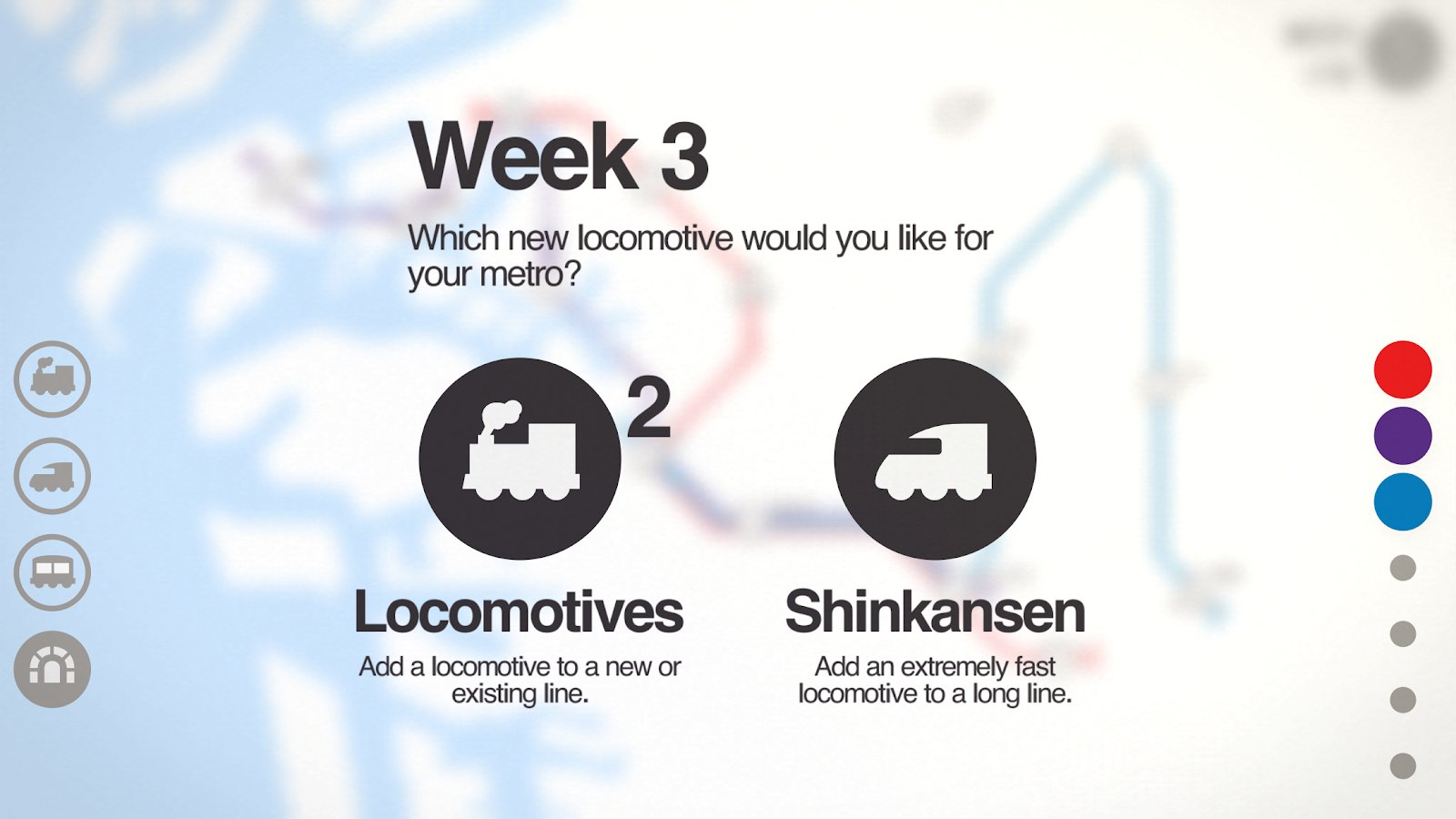 Mini Metro - Çok eğlenceli bir bulmaca oyunu, burada yalnızca düşünceli değil, aynı zamanda çok hızlı hareket etmeniz gerekiyor. Oyunun özü oldukça basit; bir şehir var ve bu şehirde metro hattı inşa etmeniz gerekiyor. Ancak bir sorun var, şehir sürekli genişliyor ve trafiği durdurmak mümkün değil. İşte bu noktada, zaten sınırlı olan kaynaklarınızı nereye harcayacağınıza çok hızlı bir şekilde karar vermeniz gerekiyor. Şehir büyüdükçe, istasyonları hareket ettirerek rayların yerlerini değiştirmelisiniz; ancak şehrin rastgele büyümesi oyunu daha da ilginç hale getiriyor!
