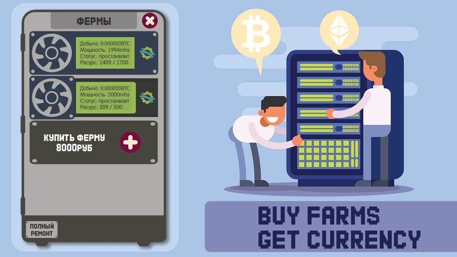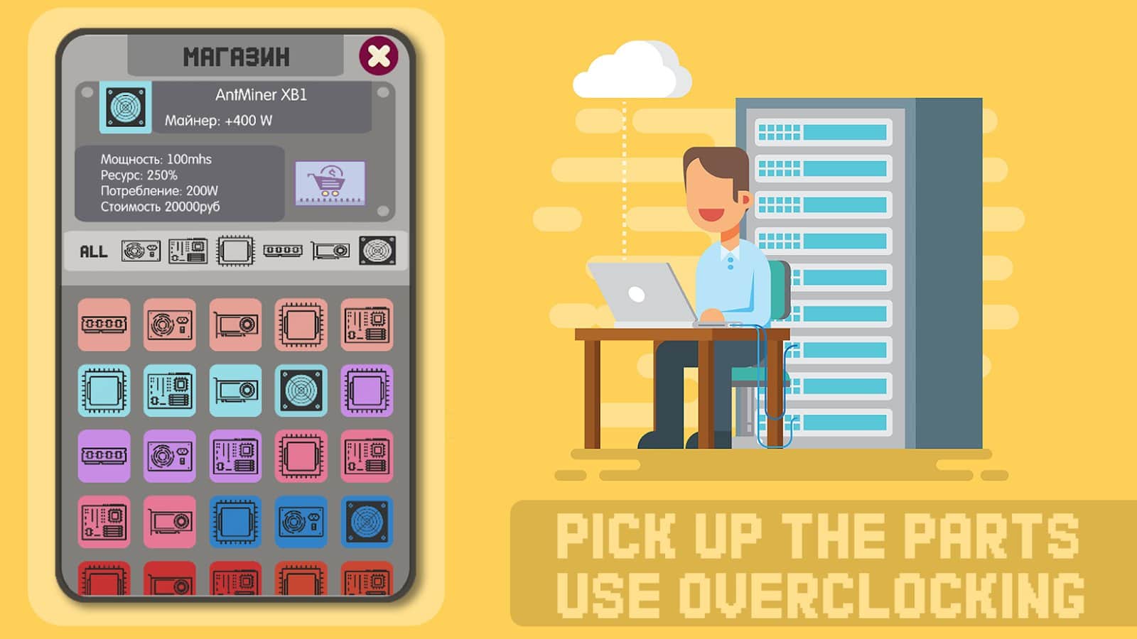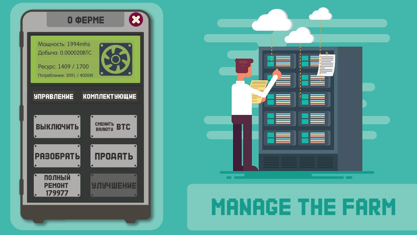 Madencilik simülatörü - iş oyunu – kendi madencilik çiftliğinizi kuracağınız ve kripto para kazanacağınız heyecan verici bir oyun. Bu simülatörde, sunulan bileşenlerden ve parçalarından çiftliğinizi inşa edecek ve kripto para kazanabileceksiniz. Güçlerinizi geliştirin ve artırın, yeni parçalar ve çiftlikler satın alın ve mükemmel kazanç elde edin. Arkadaşlarınızla yarışın ve en iyi olun. Borsa üzerindeki paranızı yönetin ve parçaların satışını yapacağınız işinizi oluşturun. Hack’leri tespit edin ve saldırılarını aşın. Para birimlerinizi değiştirin ve mega çiftlik oluşturun.
