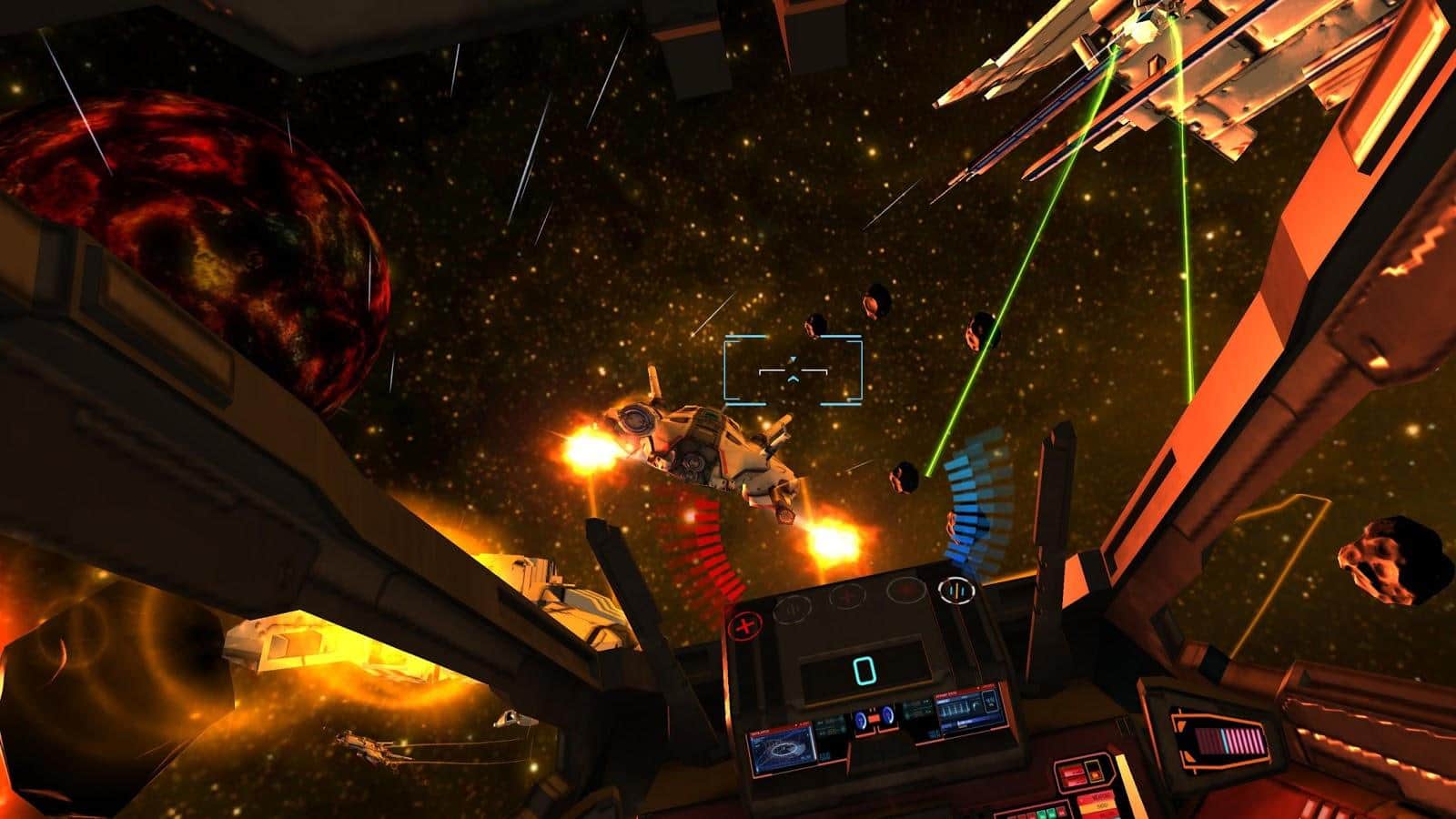 Minos Starfighter VR - Karton VR sahipleri için çok eğlenceli bir oyun. Her zaman bir uzay gemisinin kaptanı olmayı mı hayal ettiniz? Artık hayaliniz gerçek oldu! Üstelik geliştiricilerin bunu nasıl gerçekleştirdiği etkileyici. İçinde toplar, roketler ve birçok başka silahın bulunduğu gerçek bir yıldız gemisinin kokpitinden manzara. Hedefleme yine bakışla yapılıyor. Düşmanlara ateş edin, dalgaları birer birer yok edin, onlardan güç artırıcılar toplayın ve daha güçlü hale gelin.