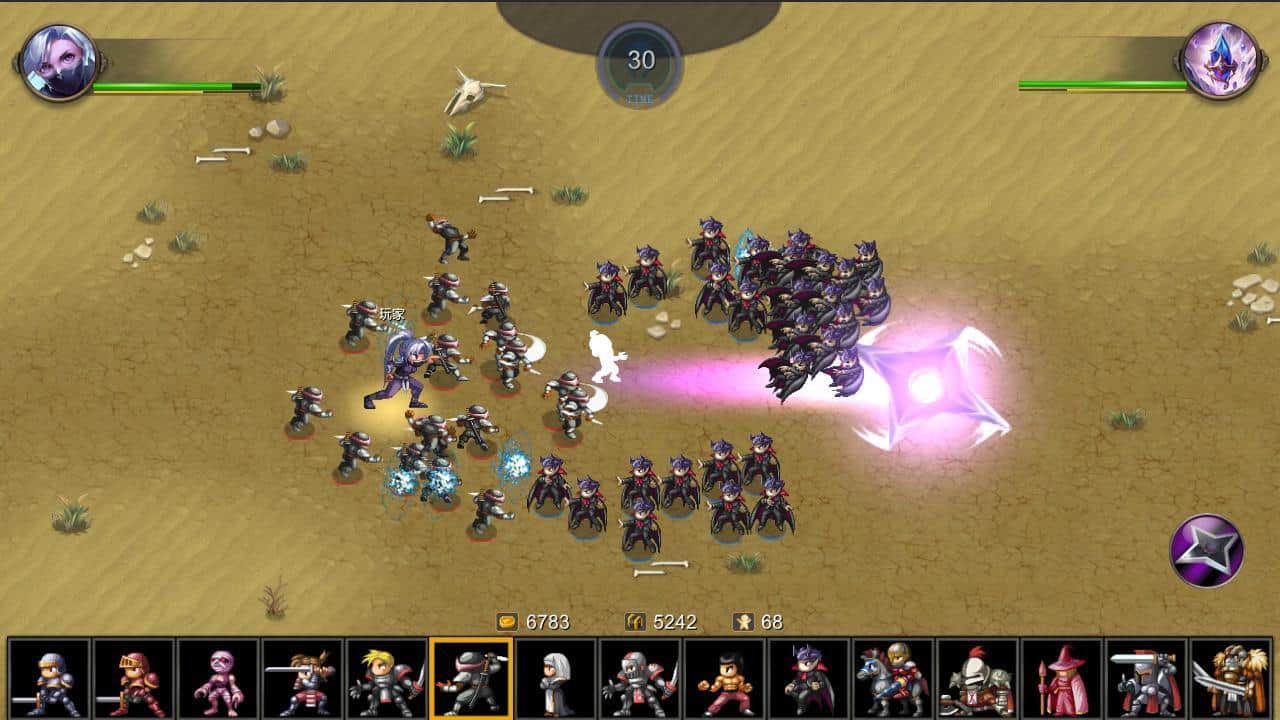 Miragine Savaşı – düşman ordularıyla savaşlara katılacağınız stratejik bir askeri oyundur. Karakterlerinizin yeteneklerini geliştirin ve güçlü saldırılar ve darbeler oluşturmak için çeşitli güncellemeler ve güçlendiriciler kullanın. Toplu savaşlar düzenleyin, düşmanın hareketlerini tahmin edin ve ani saldırılar ile kurnaz manevralar uygulayın. Korumanız altındaki güçlü yönleri kullanın ve saldırılarını birleştirin, klasik oyun deneyiminin ve olaylara tam uyumlu bir müziğin tadını çıkarın.