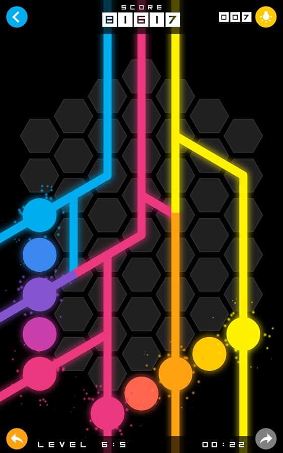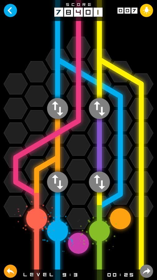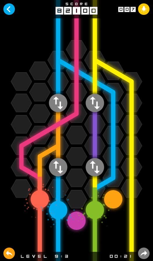 Mixit – Android için heyecan verici bir bulmaca oyunu, burada renkli noktaları çizgilerle birleştirmeniz gerekiyor. Bu oyunda karşınıza altıgen hücrelerden oluşan bir alan çıkacak, bu hücrelerde farklı renklerde noktalar yer alacak. Göreviniz, seviyeyi geçmek için aynı renkli çizgilerle noktaları birleştirmektir. Alışılmadık sorunları çözün ve yeni bir renk elde etmek için çizgileri birleştirin. Seviyeyi geçmek ve bir sonraki aşamaya geçmek için tüm gözlem yeteneğinizi ve mantığınızı kullanın. Her yeni seviyede oyunun zorluğu artacak ve oyunu geçmek için epey çaba sarf etmeniz gerekecek. Oyun, sizi 80 seviye ve parlak neon grafikleri ile mutlu edecek.
