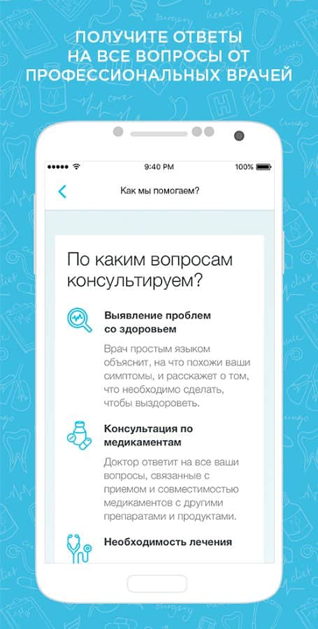 Mobil Doktor - kuyruk ve randevu olmadan, Moskova'nın en iyi kliniklerinde çalışan doktorlardan tavsiye almanızı sağlayacak bir uygulamadır. Program, metin sohbetleri ve video aracılığıyla iletişim kurmanıza olanak tanır; ayrıca fotoğraf veya test sonuçlarını ekleyebilirsiniz. Geliştiricilerin söylediklerine göre, bekleme süresi 3 dakikadan fazla değildir ve istediğiniz zaman danışmanlık alabilirsiniz; tek ihtiyacınız olan bir akıllı telefondur. Uygulamadaki son derece faydalı bir özellik, kişisel bir hesap oluşturma imkanıdır. Sitede, endişeli annelerle sabırla iletişim kuracak çocuk doktorları da mevcuttur.