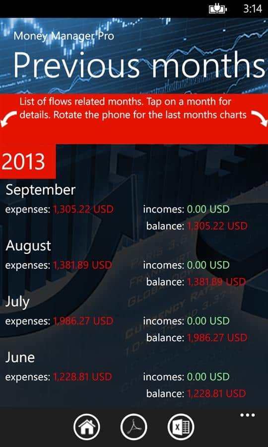 Para Yönetici Pro - Windows Phone için bir uygulama, para akışlarınızı yönetmenize yardımcı olacak. Artık istediğiniz zaman dilimindeki tüm harcamalarınızı kolayca takip edebilirsiniz.