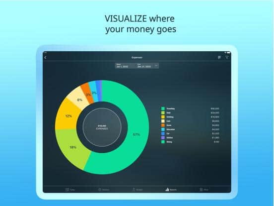 Money Pro - Kişisel Finans - Bütçenizi tam olarak kontrol etmek ve planlamak, hayatınızı büyük ölçüde kolaylaştıracaktır, çünkü ne kadar kaynağınız kaldığını ve bunları neye harcayacağınızı veya geleceğe ne kadarını ayıracağınızı tam olarak bileceksiniz. Sadece birkaç saniye içinde kendi gelir veya gider bilgilerinizi girebilir, önemli ödemeler için hatırlatmalar alabilir, belirli kategorilere (ev, borçlar, seyahat, eğitim, yiyecek, restoranlar, giyim, spor, diğerleri) ayrılmış ayrıntılı bir grafik görebilir ve telefonunuzun kamerası aracılığıyla Artırılmış Gerçeklikte raporları görüntüleyebilirsiniz.