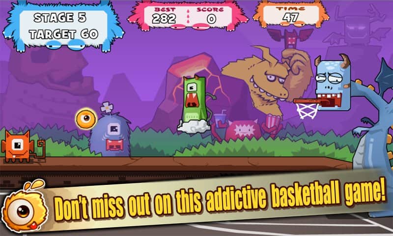 Canavar Basketbolu - Android için heyecan verici bir spor basketbolu, burada neşeli ve eğlenceli canavarlarla oynayacaksınız. Oyunda basit bir kontrol sistemi var, bu da oyunu her yaş için evrensel hale getiriyor. Ayrıca, karakter çeşitliliği sizi memnun edecek. Oyunda basit çizim grafikler var, ama bu oyunun ilginçliğini ve benzersizliğini azaltmıyor. Basketbol aksesuarları olan top ve sepet de canavarlar şeklinde tasarlanmıştır.