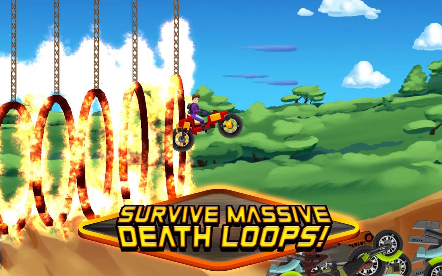 Canavar Bisiklet Motokros – güçlü bir motosikletin direksiyonuna geçin ve onu oyunun tehlikeli pistlerinde sürün. Ölü döngülerde muazzam hızlarda yarışacağınız, rampalarda yukarı zıplayacağınız ve dar tünellerden geçeceğiniz ekstrem denemelere hazırlanın. Uçurumların ve çukurların üzerinden geçin ve geçilen seviyeler için değerli ödüller ve hediyeler kazanın. Kendinizi, benzersiz dış görünüşe sahip ve sizi özellikleriyle mutlu edecek yeni motosikletler keşfedin.