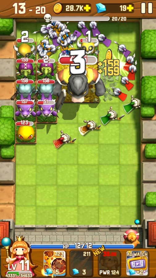 Canavar Kırıcı Kahramanı – Android için bir oyun, burada cesur prensesi kontrol edeceksiniz ve kalenize saldıran canavarlara karşı direneceksiniz. Bu oyun, herkesin bildiği arkanoid oyununa uzaktan benziyor. Bu oyunda, büyük bir güce sahip olan ve tek başına güçlü canavarlara meydan okuyabilen prensesi yöneteceksiniz. Telefonunuzun veya tabletinizin ekranına tıklayın ve canavarlara ve düşmanlara doğru kahraman ordusunu gönderin, bu ordular düşmanlara tek bir hat halinde saldıracak ve duvarlardan sekerek ilerleyecek. Yolunuzdaki her şeyi yok edin ve düşmanların zafer kazanmasına izin vermeyin. Prensesinizi geliştirin ve ona yeni yetenekler ve beceriler kazandırın. Tüm tuğlaları kırın ve harika sonuçlar elde edin.