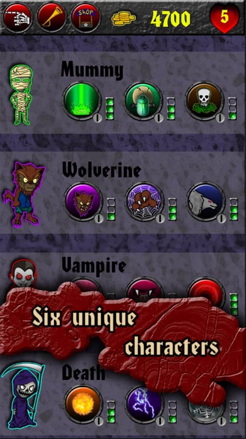 Canavar Karanlık Efsane – sizi öteki dünyaya götürecek bir eşleştirme oyunudur. Bu oyunda altı benzersiz karakterden birini seçme şansına sahip olacaksınız: avcı, rahip, mumya, kurt, vampir ve ölümcül. Her bir kahramanın kendine özgü yetenekleri ve becerileri vardır; örneğin – avcının tüfeği ve bombaları vardır, rahip balkabaklarını ateşler ve ölüleri yok eder, mumya sarmaları kontrol eder, vampir kan büyüsü yapar ve ölümcül büyü kullanır. Her bir kahramanın yeteneklerini oyunda kullanarak seviyeleri daha hızlı geçebilirsiniz. Ödüller ve bonuslar kazanın ve yeni karakterlere erişim elde edin.