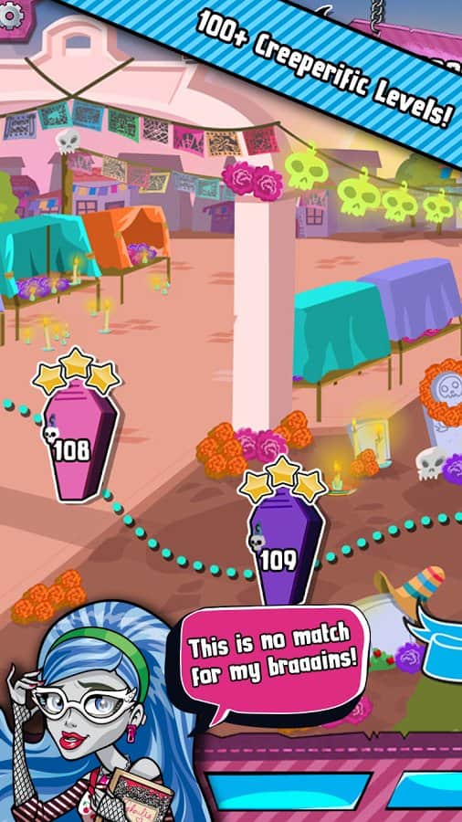 Monster High Ghouls ve Jewels - üçlü eşleştirme türünde bir oyun, burada modaya uygun bir canavarı giydirmeniz gerekiyor. Kendi canavarınızı yaratın ve bu oyunda değerli taşlar ve bonuslar toplayarak onu giydirin. Sizi üçü eğlenceli kahraman seçeneğiyle 100'den fazla farklı seviyenin beklediği bir oyun. Üç veya daha fazla aynı türden sembolü toplayın, ekrandan kaybolacak ve böylece vampiriniz için yeni yetenekler ve kıyafetler kazanacaksınız.