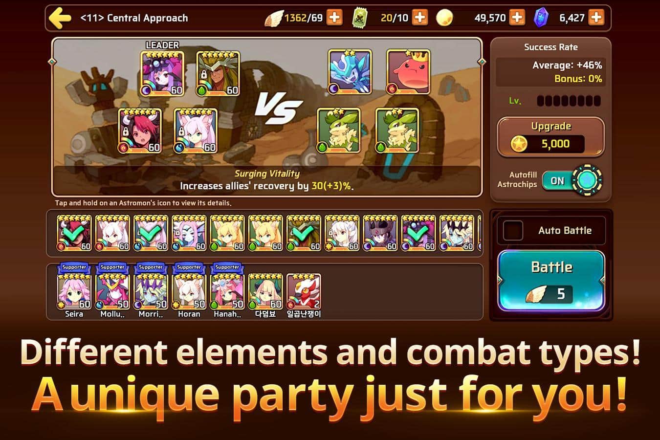 Canavar Süper Ligi – Android için RPG, burada yenilmez canavar takımınızı toplamanız gerekiyor. Bu oyunda, hava geminizle sayısız ve çeşitli yüzen adalarda seyahat edeceksiniz. Her ada kendine özgü ve birçok farklı canavara sahip, onlarla savaşın ve galip gelin. Başarılı bir savaşın ardından, takımınıza benzersiz bir görünüme sahip yeni karakterler ekleyebilirsiniz ve bu karakterler size yeni yetenekler ve özellikler sunacak. Canavarlarınızı oyunun sayısız dünyasından geçirin ve düşmanlarla savaşın. Tüm görevleri yerine getirin ve değerli ödüller kazanın.