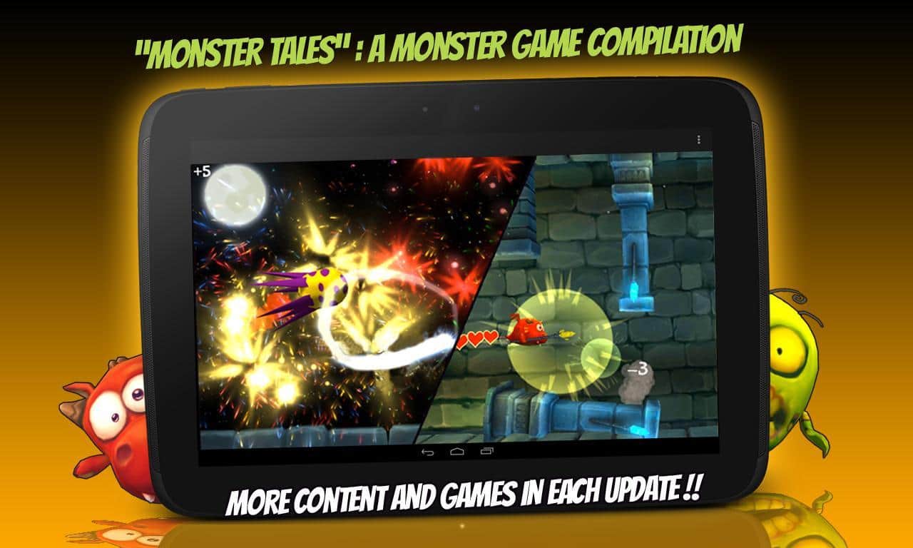 Canavar Hikayeleri - üç mini oyundan oluşan bir android trilojisidir. Bunlardan biri, çeşitli dünyalarda uçan ve çeşitli düşmanlarla savaşan bir ejderhayı yöneteceğiniz arcade tarzı bir oyundur. Diğerinde ise, patlayan havai fişeklerin canavarı barındıran duvara dokunmadan patlatılması gerekecek.