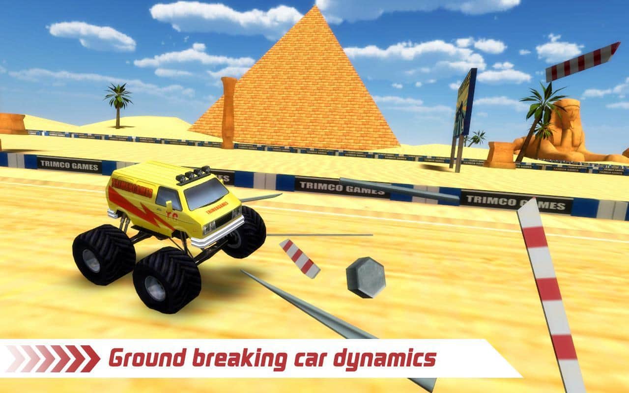 Büyük tekerlekli araçlarla yapılan, bir bakıma gerçek dışı ama son derece eğlenceli arcade yarışları. V8 motorunun gürültüsü etrafı sarsan dev bir Canavar Kamyonun direksiyonuna oturun ve pistlerde yarışarak paraları ve çeşitli bonusları toplayın, çeşitli yapıları devirin. Parlak grafikler, harika oyun deneyimi ve birçok seviye, bu yarışları sadece hız tutkunları için mükemmel bir keşif haline getirecek.