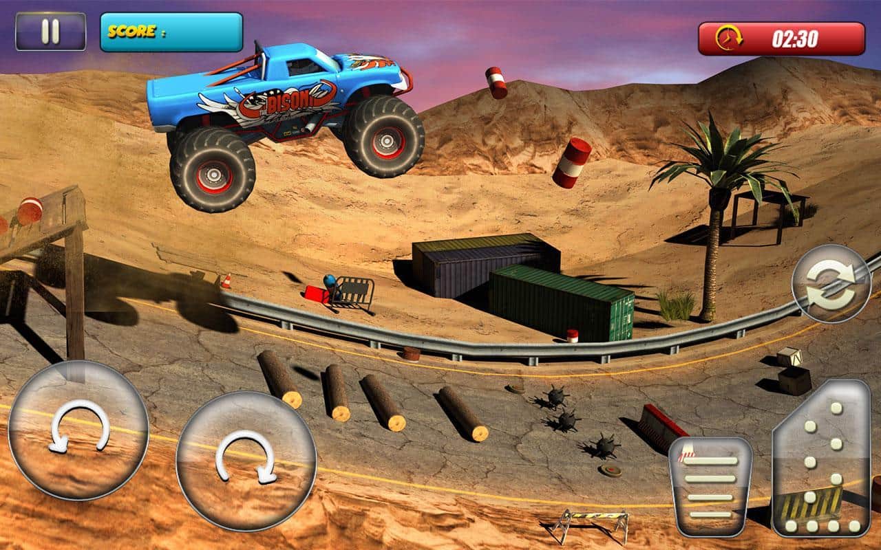 Canavar Kamyon Sürücüsü 3D – canavar kamyonlarıyla tehlikeli parkurlarda yarış. Bu Android oyununda dev bir kamyonu kontrol edecek ve oyun boyunca sayısız parkurda tüm engelleri aşarak onu yönlendireceksiniz. Aşırı hızda sürüşe hazırlanın, kamyonunuzu gaz pedalına basarak hızlandırın ve akıl almaz numaralar yaparak rampalardan zıplayın. Dik yamaçlardan ve tepelerden geçin, ayrıca devrilmiş araçları ve engelleri aşın. Kamyonunuzu devirmemeye çalışın, aksi takdirde oyun sizin için sona erecek ve tüm seviyeleri baştan oynamanız gerekecek. Oyunun sayısız görevini tamamlayın ve yeni kamyonlar ve araçlar keşfedin.