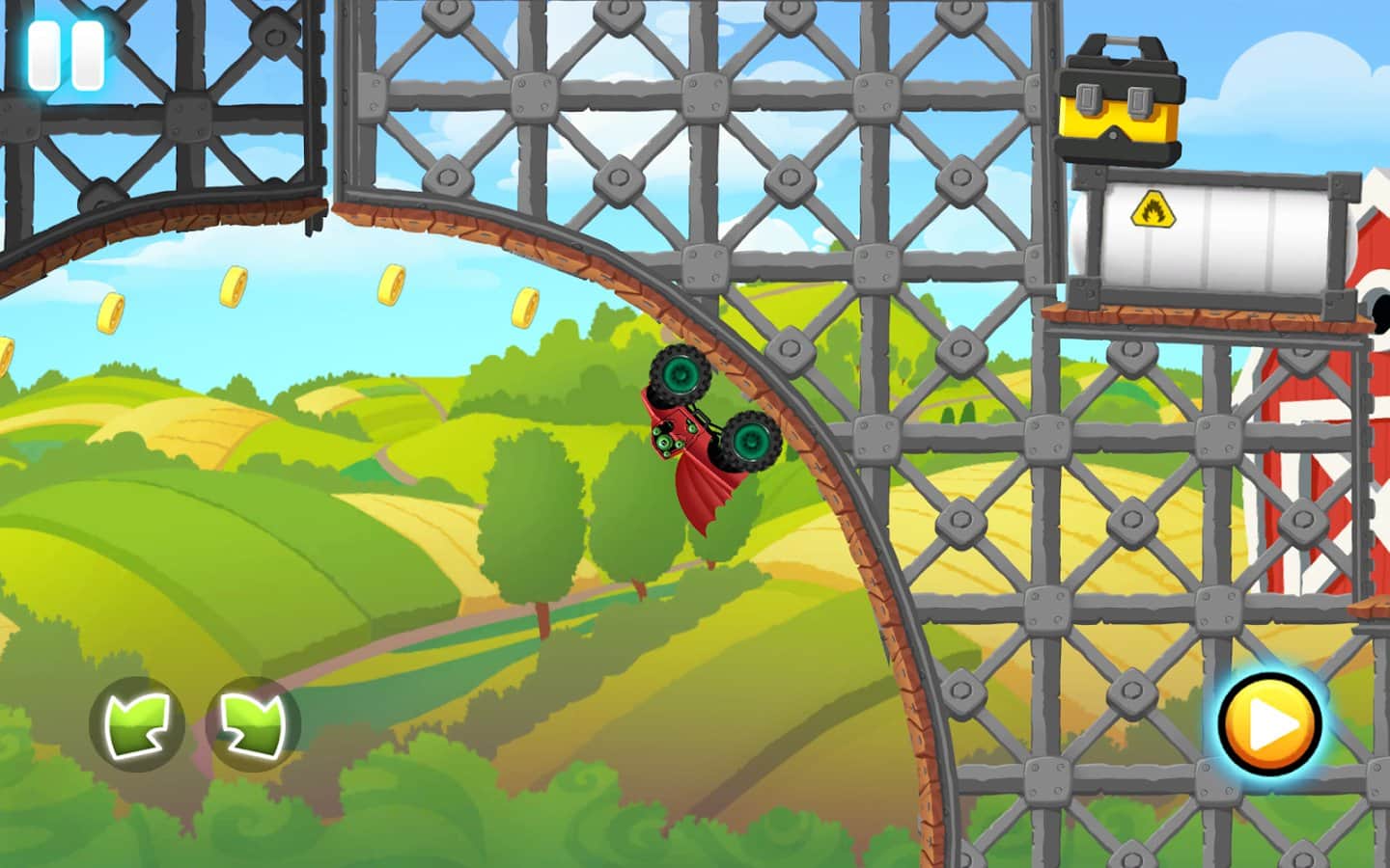 Canavar Kamyonları Aksiyon Yarışı – canavar kamyonunu kontrol altına alın ve onu oyunun tehlikeli parkurlarında yönlendirin. Bu oyunda, şekil değiştirebilen bir kamyonu yöneteceksiniz ve bu sayede tehlikeli engelleri ustalıkla geçeceksiniz. Delice bir hızla oyunun zorlu parkurlarında yarışın; burada dik yamaçlara tırmanacak, döngülerden geçecek, dar köprülerden, ateşli tünellerden ve su engellerinden sıyrılacaksınız. Ekstrem yarışlara hazırlanın ve arabanızı kullanma yeteneğinizi sergileyin. Yol boyunca altın paraları toplamayı ve mükemmel bonusların gizlendiği gizli yerleri açmayı unutmayın.