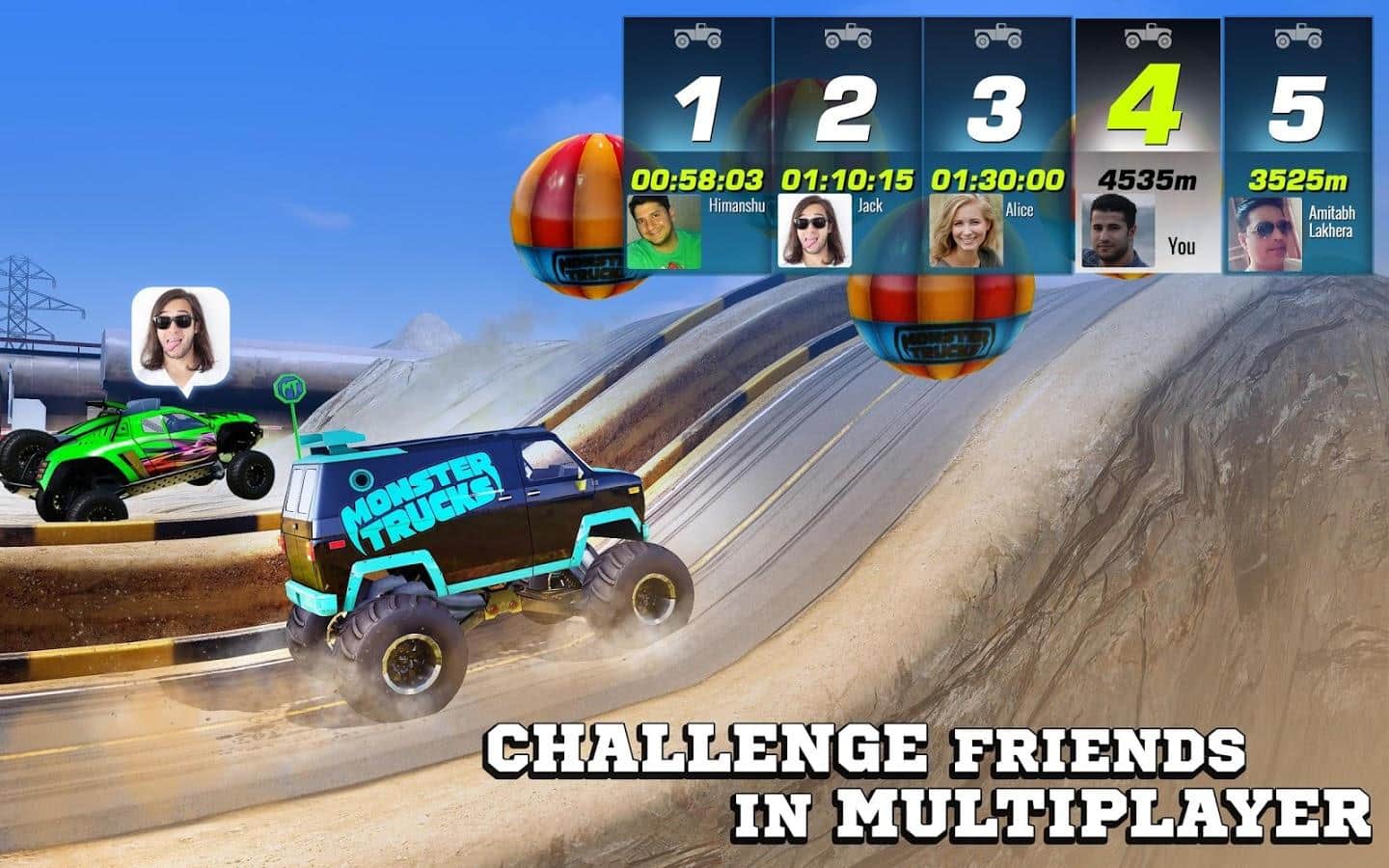 - Eşsiz güç, süspansiyon, tutuş ve açısı olan 64 farklı kamyonla yarışın