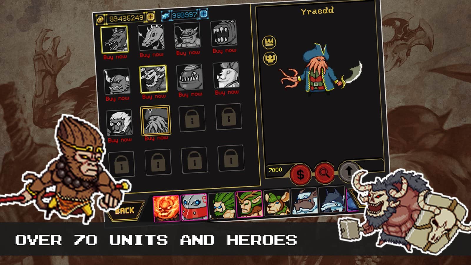 Canavarlar X Canavarlar – Android için bir strateji oyunu, burada canavarlar dünyasına girecek ve topraklar için savaşacaksınız. Yenilmez canavar ordunuzu toplayın ve üssünüzü ele geçirmeye çalışan düşmanlar ve rakiplerle savaşın. Tüm gücünüzle savunmanızı yapın, düşmanın topraklarınıza yaklaşmasına izin vermeyin. Eşsiz yeteneklere sahip yeni canavarlarla ordunuzu güçlendirin, onları kullanarak düşmanı yenebilirsiniz. Büyü ve birçok büyü kullanın, ayrıca savaş kulelerinizi akıllıca yerleştirin ve rakiplerin savunmasını yok edin. Karakterlerinizin yeteneklerini geliştirin, onlara güç ve kuvvet katın. Oyun, sizi piksel grafikleri, 80'den fazla karakter, 20 büyü, 10 kule ve 50 başarı ile mutlu edecek.