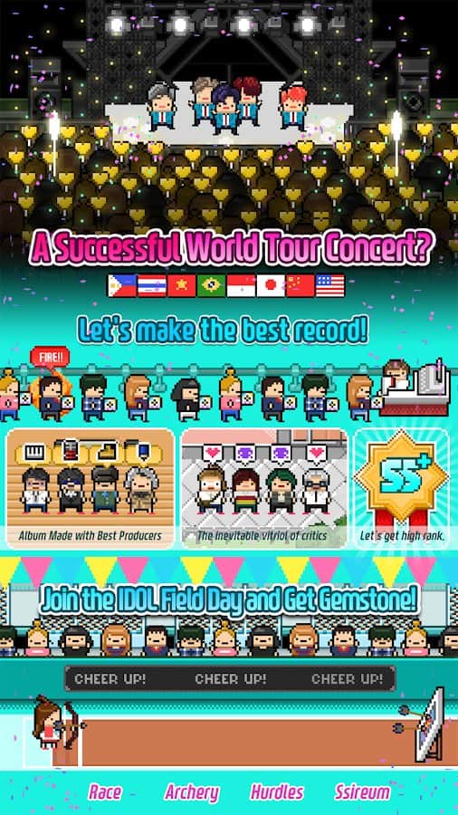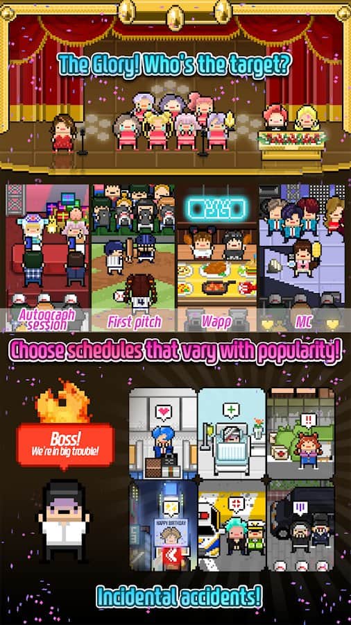 Aylık İdol – Android için ilginç bir simülatör, burada prodüktör rolünü üstleneceksiniz. Bu oyunda küçük bir müzik grubu prodüksiyon ve gelişim ajansının sahibi olacaksınız. Kendi erkek veya kız grubunuzu oluşturun ve onları tüm dünyada tanınır hale getirin. Onlarla sözleşmeler yapın, sayısız şarkı kaydedin. Şehrinizde konserler verin ve farklı şehirlere turneye çıkın, hayranlarınızdan coşkulu geri dönüşler alın. Gruplarınızı popüler hale getirin ve şarkı ve konser kayıtları için bir program oluşturun. Albümleri milyonlarca kopya halinde satıp müziğinizi YouTube'da yayınlayın.