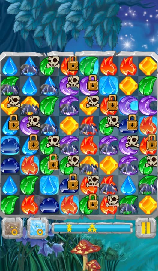 Ay Taşları / Moon Jewels - Bu, en basitten en zora kadar birçok farklı seviyeye sahip bir '3'lü eşleştirme' oyunudur. Taşları üç veya daha fazlasını sırayla ve sütunlar halinde dizin, donmuş hücreleri açın, kemikli ve kilitli hücreleri yok edin, örümcekleri yok edin. Element taşlarını toplayın ve bunları etkinleştirin. Element taşı oluşturmak için 4 veya daha fazla taşı yan yana dizin. Kemikli taşlar sadece sihirle yok edilebilir, kilitli taşlar ise sadece 3 taşı sırayla dizerek yok edilebilir.