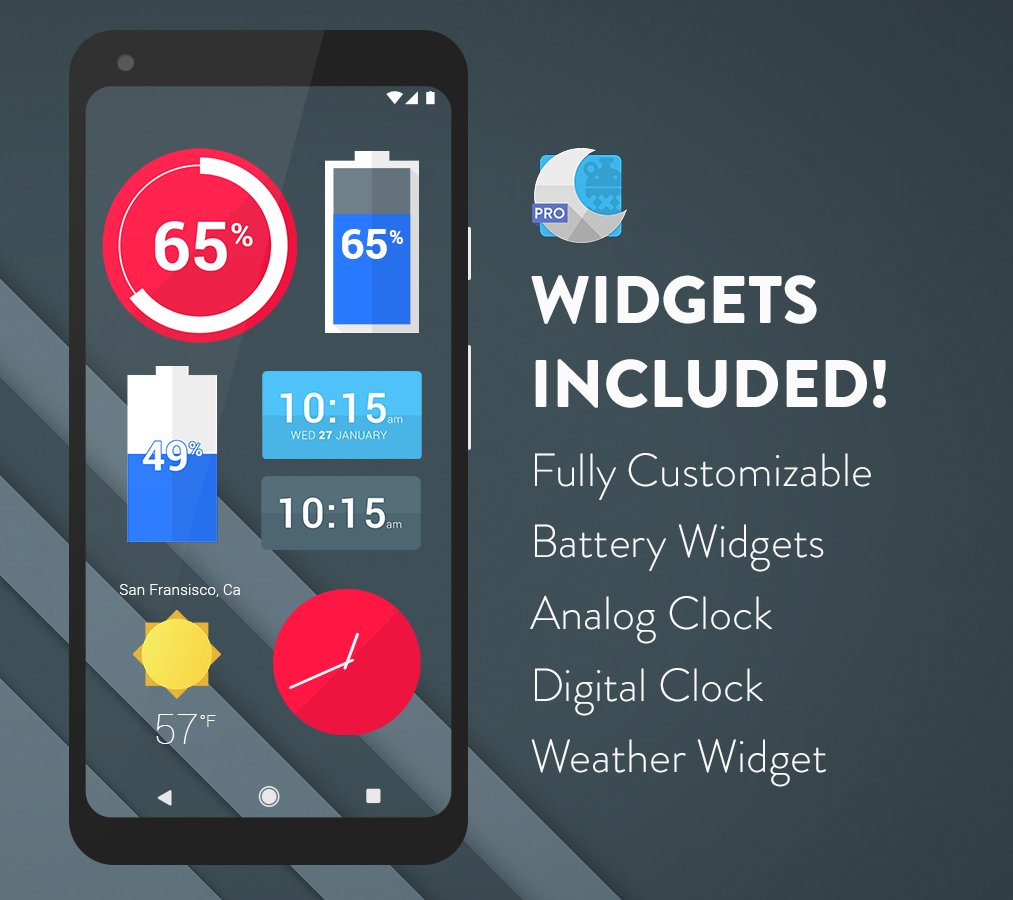 - Tam stil: Tam bir görünüm için 100'den fazla özel Material duvar kağıdı ve özelleştirilmiş widget'lar (saat, hava durumu) içerir.