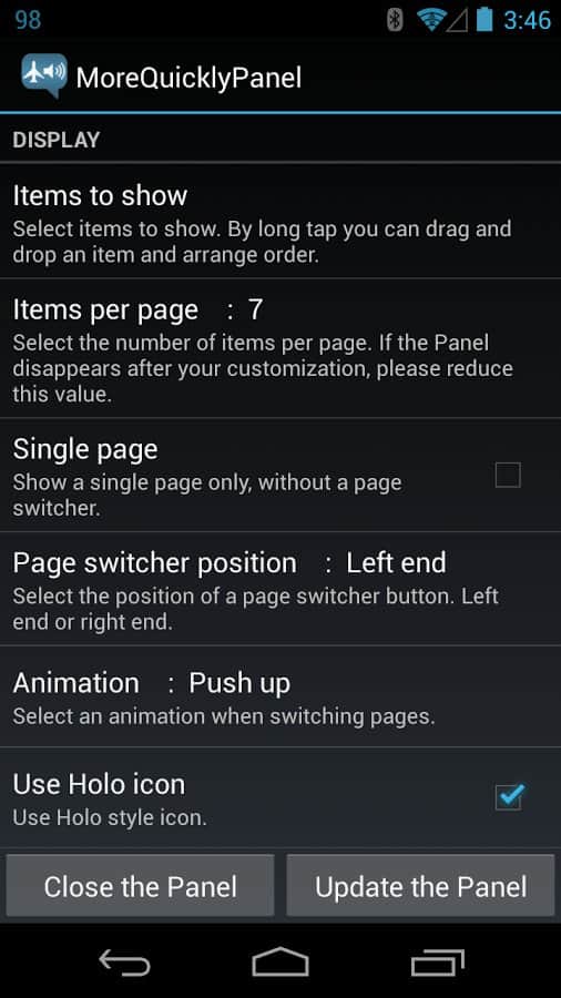 Yorumlar ile MoreQuicklyPanel üzerinde Android