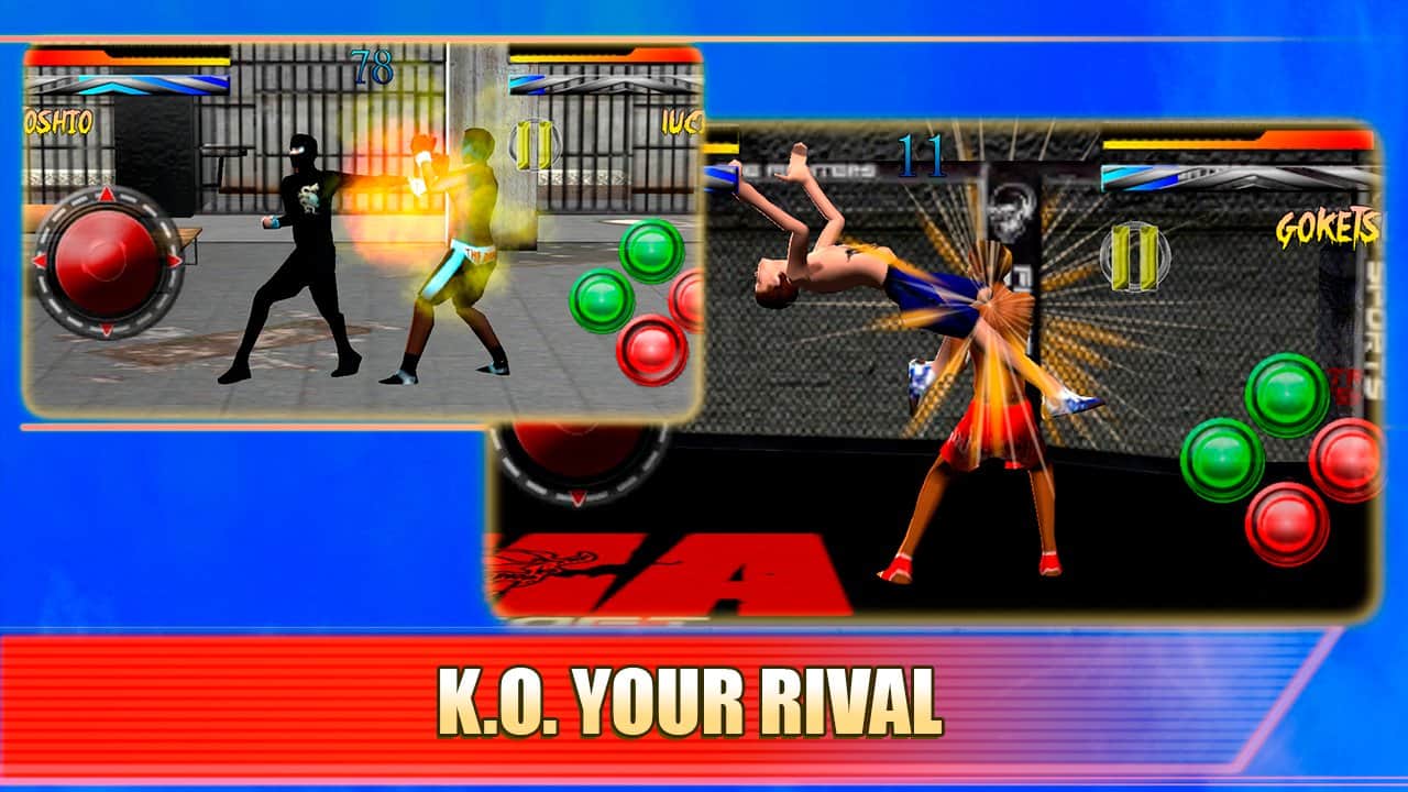 Etkileyici sokak dövüşleri, kural tanımayan tekniklerle her dövüş sanatları meraklısına yoğun duygular yaşatacak. Ölümcül Sokak Dövüşçüleri Kulübü'nde sokak dövüşleri düzenli olarak yapılacak, sevdiğin karakteri seçmek ve sert ve alternatifsiz bir dövüşe hazırlıklı olmak önemli; bazen 3 raund boyunca ayakta kalman gerekebilir. Her şey oyun tarzına bağlıdır, ama her zaman rakibini daha hızlı yere sermek ve dövgüyü minimum güç kaybıyla bitirip tartışmasız bir galip olarak çıkmak daha iyidir. Ringde yerini al ve rakibini yen!