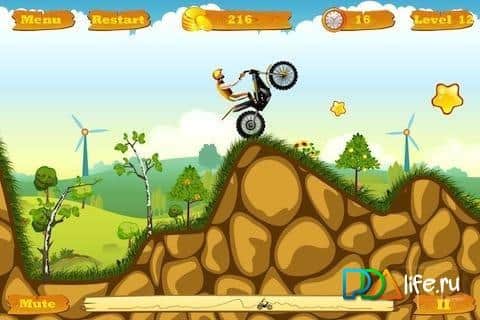 Moto Yarışı - hareket fiziğine dayalı motosiklet yarışlarıdır. Yolunuzda birçok engel ve çok engebeli bir parkur var, bu parkuru aşarken yolda madeni paraları toplamanız ve motosikletten düşmemeniz gerekiyor. Ayrıca, yüksek puan kazanmak ve Game Center'daki başarılarınızı göstermek için zorlu numaralar yapabilirsiniz. Hadi, birçok tehlikeli parkur sizi bekliyor!