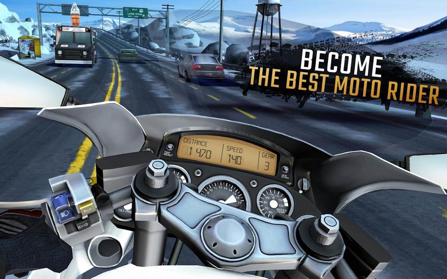 Moto Rider GO: Highway Traffic – Android için birinci şahıs motosiklet yarışı oyunu. Bu oyunda güçlü bir motosikletin kontrolünü elinize alacak ve sonsuz trafiğin bulunduğu çeşitli yollar boyunca hızla gideceksiniz. Motosikletin direksiyonuna geçin ve harika sürüş becerilerinizi sergileyerek inanılmaz numaralar yapın ve karşıdan gelen araçları geçin. Yüksek hızda ilerleyin ve araçlara olabildiğince yakın geçerek ek ödüller kazanmaya çalışın. İstediğiniz zaman yolda yarışın ve benzersiz özellikler ve görünüme sahip yeni motosikletler keşfedin.