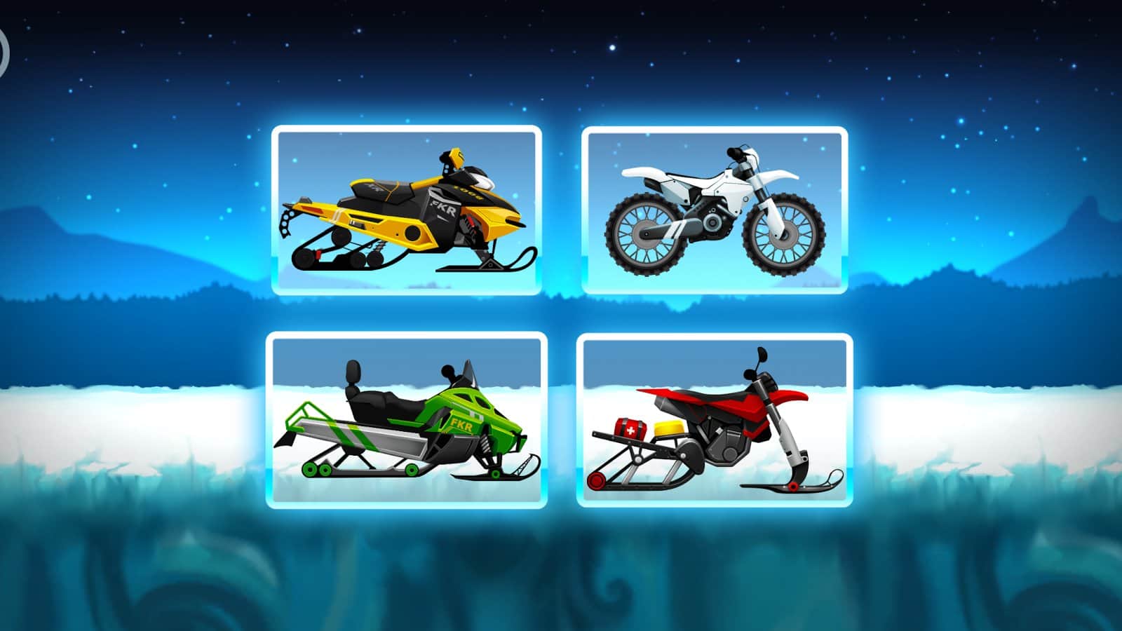 Motokros Çocuklar - Kış Sporları - bir motosikletçiyi kontrol altına alın ve onu festivale uygun şekilde tasarlanmış çeşitli seviyelerden geçirin. Bu oyunda motosiklet ve kar motosikleti arasında seçim yapabilirsiniz, beğendiğiniz aracı alın ve karla kaplı zirvelerde tehlikeli ve heyecan verici numaralar yapın. Aşırı sürüşe hazırlanın ve buzdan yapılmış özel rampaları kullanarak uçurumların üzerinden atlayın. Tehlikeli parkurları geçin ve belirlenen görevleri en kısa sürede tamamlayarak kendi rekorlarınızı oluşturun. Yeni motosikletlere ve kar motosikletlerine erişim açın ve mevcut olanları yükseltin.