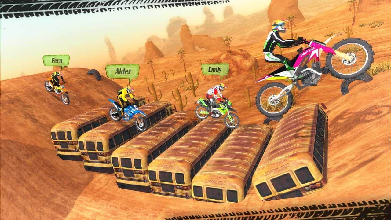 Motokros Yarışı – Android için dinamik bir oyundur, burada motorlu araçlarla ekstrem yarışlara katılacaksınız. Yarışçıyı kontrol edin ve çöl ve karla kaplı zirvelerde çeşitli lokasyonlarda yarışın ve inanılmaz hareketler ve taklalar yapın. Rakiplerle birlikte yarışın ve bitiş çizgisine en hızlı şekilde ulaşmaya çalışın. Yapılan hareketler için puan kazanın ve hızlanmak ve mümkün olduğunca yükseğe fırlamak için hızlandırıcılar kullanın. Rampalarda zıplayın, hızınızı artırın ve kendinize yeni hareketler keşfedin. Kış yarışlarının heyecanını yaşayın ve gerçekçi fiziğin tadını çıkarın. Tüm testleri geçin ve yeni motorları açın.