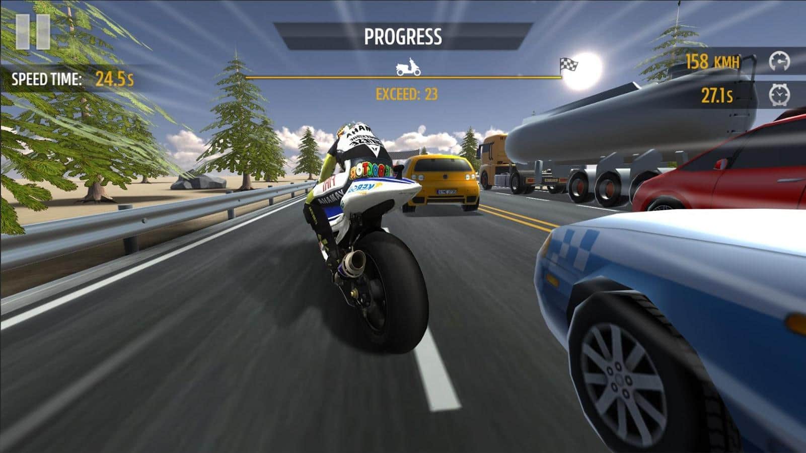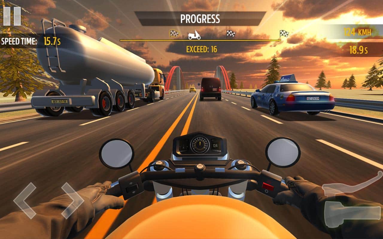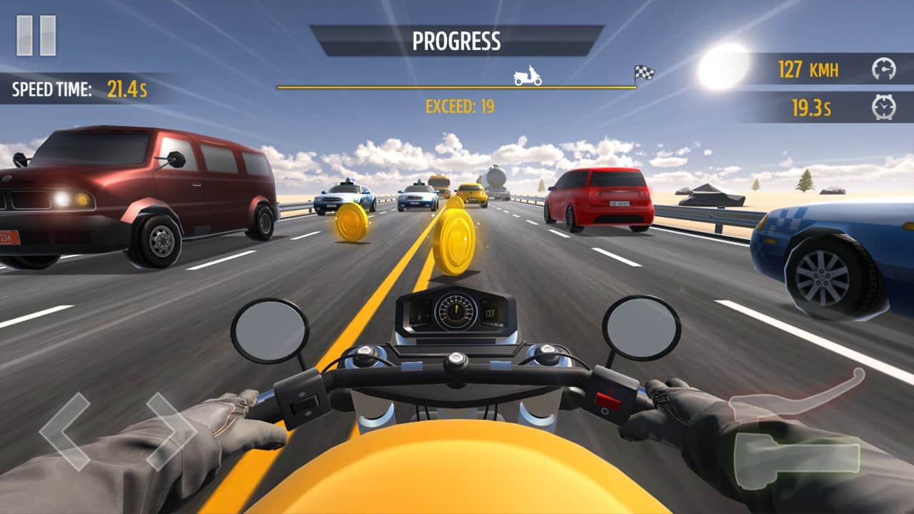 Motosiklet Yarışı – şehirdeki hareketli pistlerde hızlı bir motosiklet sürün. Bu oyunda, büyük hızda şehir pistlerinde giden bir motosiklet kullanacaksınız ve sonsuz trafik akışında manevra yapacaksınız. Bu oyunun en iyi yarışçısı olun ve liderlik tablosunda zirveye çıkın. Farklı motosikletleri yönetin ve yol boyunca sayısız madeni para toplayın. Motosikletinizi mümkün olan en yüksek hıza çıkarmaya çalışın ve karşıdan gelen araçlara olabildiğince yakın geçerek ekstra puan kazanın. Yeni motosikletlerin kilidini açın ve onları gerçek hayatta test edin.